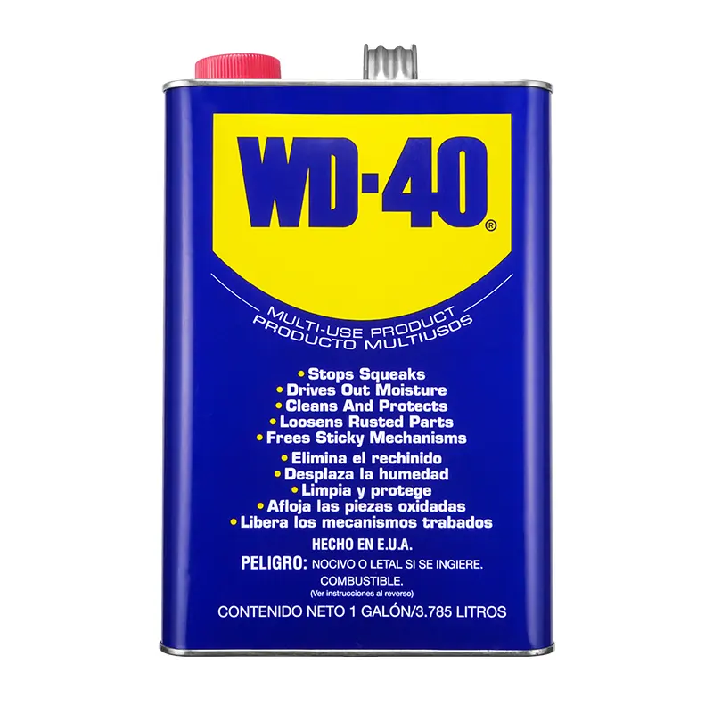 🛢️ Aflojatodo multiusos WD-40 modelo 10110 en galón de 4 litros. Limpia, lubrica, protege contra la corrosión y elimina humedad. Ideal para uso industrial, automotriz y general.