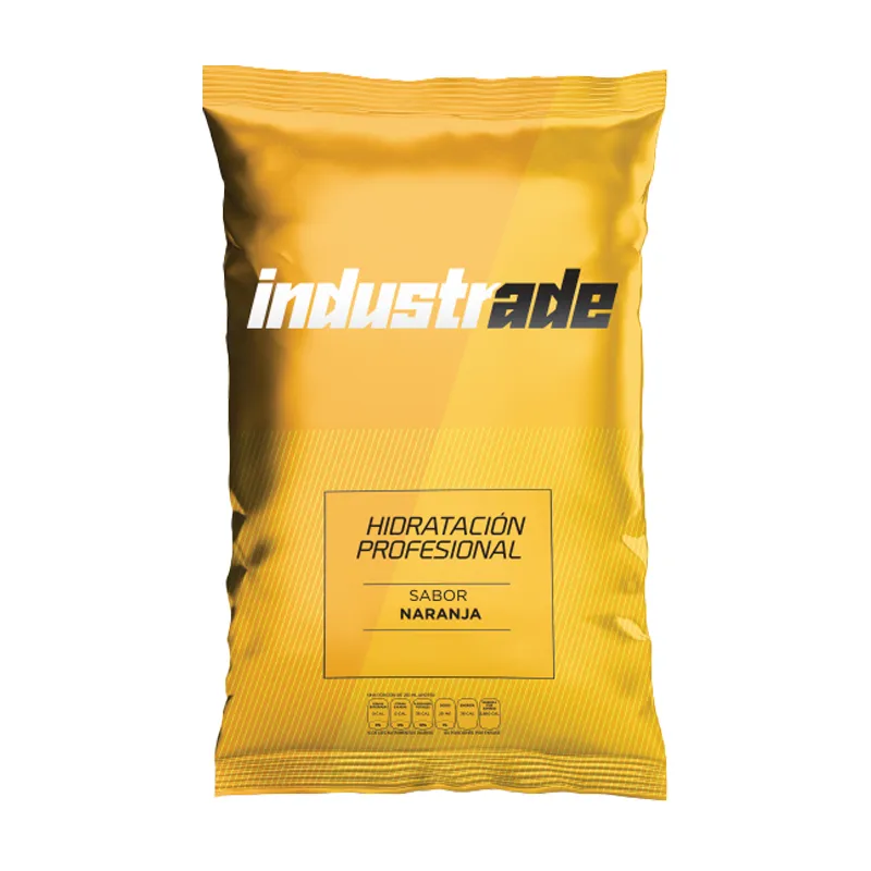 Industrade presenta su bebida hidratante sabor naranja en sobre en polvo. Con azúcar y electrolitos esenciales, esta fórmula está pensada para recuperar líquidos y energía durante largas jornadas de trabajo físico.