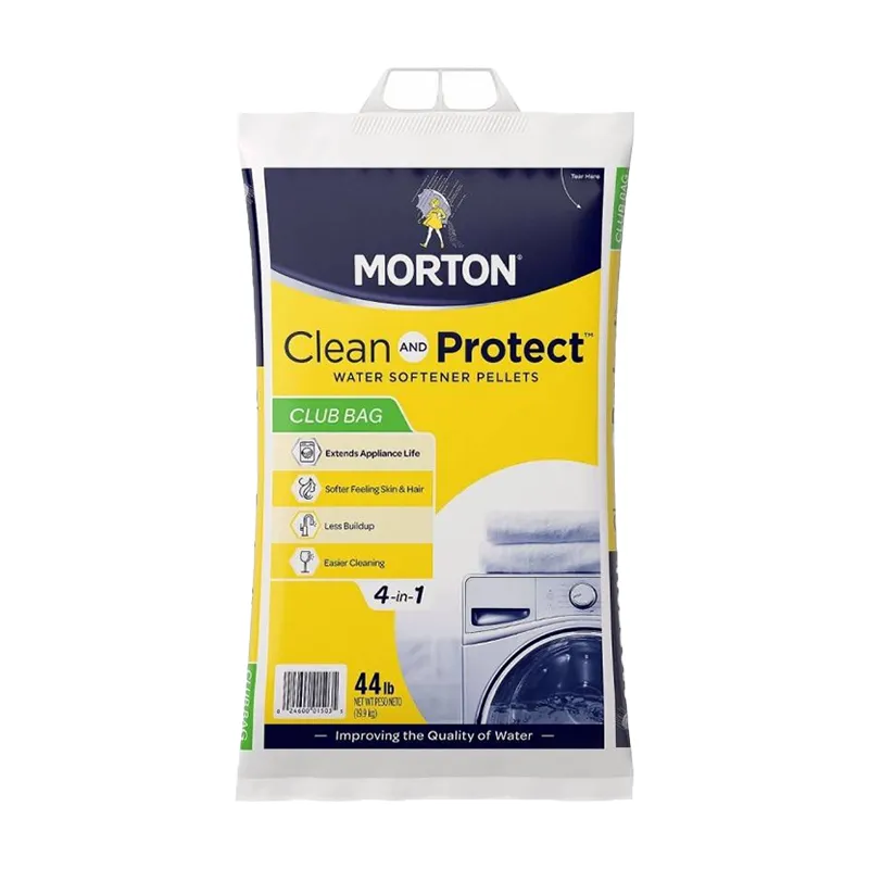 🧂 Sal de alta pureza Morton en presentación de 44 lb. Especial para regenerar resinas de intercambio iónico en sistemas suavizadores de agua. Uso residencial, comercial o industrial.