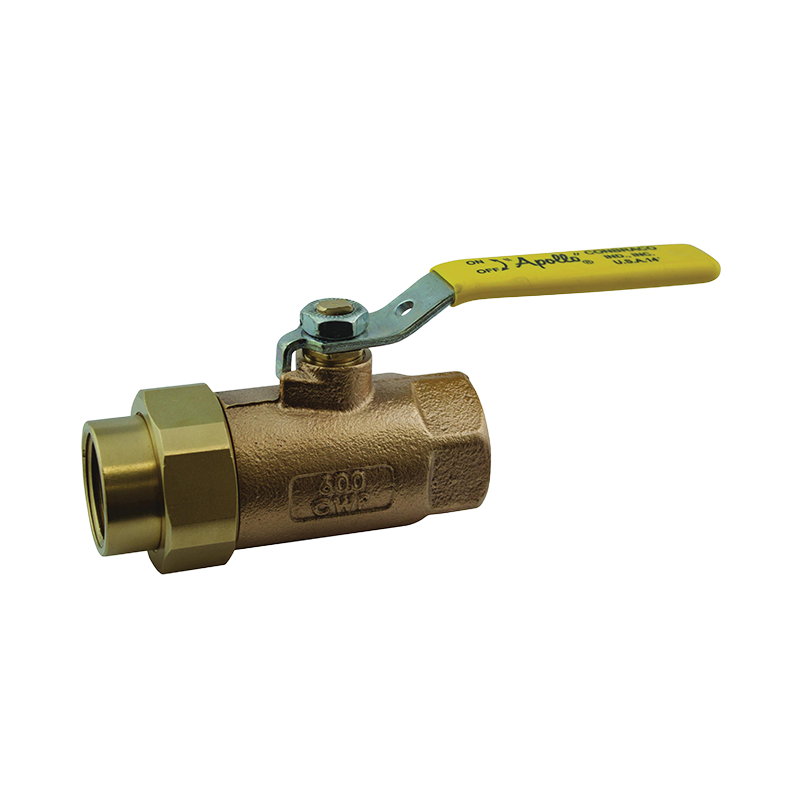 Válvula de bola APOLLO 70‑305‑01 de 1″ con unión, cuerpo de bronce, 600 psi. Ideal para sistemas industriales robustos y de fácil montaje.